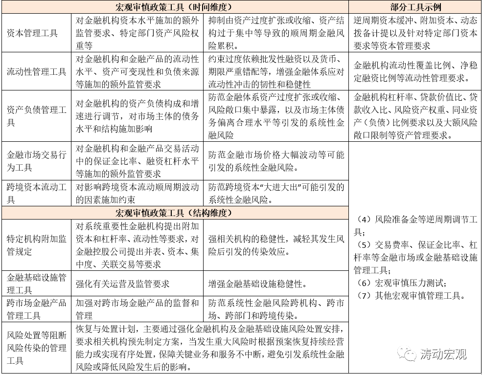 時間維度的工具主要包括資本管理工具、流動性管理工具、資產負債管理工具、金融市場交易行為工具以及跨境資本流動管理工具。