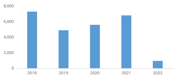 2018-2022年1-2月房企拿地投資規模(億元)