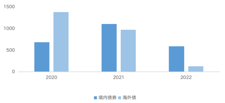 近三年1-2月同期房企境內外發債規模(億元)