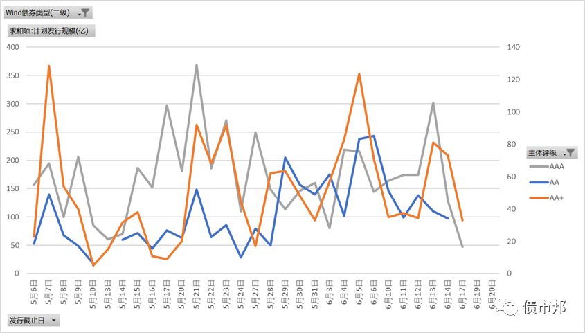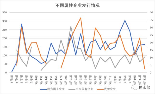 從不同評級發(fā)行情況來看,AAA級發(fā)行人和AA發(fā)行人保持了一致的發(fā)行節(jié)奏,沒有出現(xiàn)AAA瘋搶AA遇冷的情況;從不同所有制企業(yè)發(fā)行情況來看到,也沒有發(fā)現(xiàn)民企債被拋棄的情況(民企債券以前沒有好發(fā),現(xiàn)在也談不上拋棄)