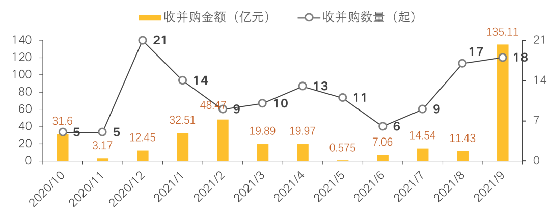 在資本市場開始出現(xiàn)回調(diào)的過程中,市場頻發(fā)企業(yè)大宗收并購事件。根據(jù)克而瑞物管&中物研協(xié)監(jiān)測,本月上市物業(yè)服務企業(yè)對外公告收并購事項新增18起,交易金額135.11億元。