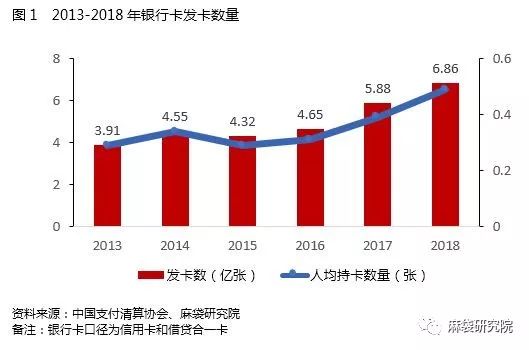 相比于成熟的歐美體系,信用卡業務在我國起步較晚,但發展極為迅速。數據顯示,2013年至2018年,我國銀行卡發卡數量總體呈上升趨勢,尤其在2016-2018年三年期間,年增發卡量高達約1億張,如圖1所示: