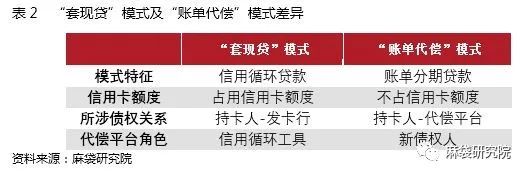 而“賬單代償”模式則是實現了風險轉嫁,債權關系從持卡人-發卡行變更為持卡人-代償平臺。因此,對于發卡行而言,“套現貸”模式具有更大風險。