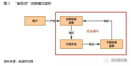 “套現貸”模式,是利用信用卡本期賬單與下期賬單之間的時間差,由用戶通過代償平臺循環刷取,用下期賬單的欠款來償還本期賬單的欠款,如下圖所示:
