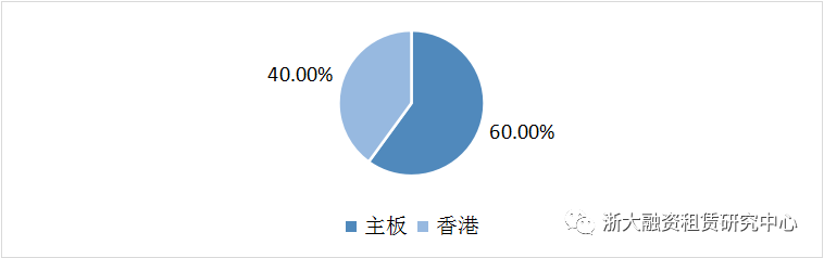 8月開展融資租賃業(yè)務(wù)的上市公司中在主板上市的企業(yè)占比最高,占總數(shù)的60.00%;其次是香港上市的企業(yè),占剩余的40%。本月創(chuàng)業(yè)板上市公司未開展業(yè)務(wù)。