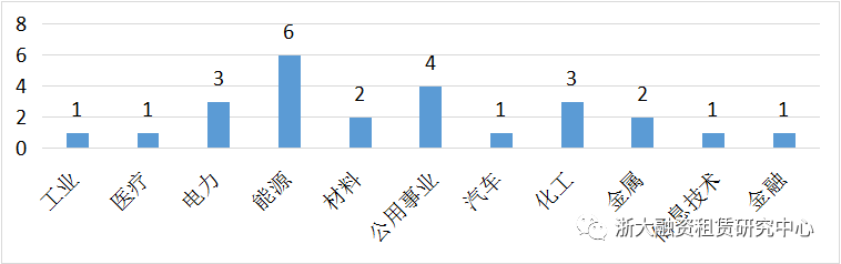 8月上市公司開展融資租賃業(yè)務(wù)行業(yè)投向中,數(shù)量最多的是能源行業(yè),開展6筆業(yè)務(wù);其次是公用事業(yè)領(lǐng)域,均開展了4筆融資租賃業(yè)務(wù);化工和電力行業(yè)均開展3筆融資租賃業(yè)務(wù),其余的子行業(yè)開展業(yè)務(wù)數(shù)量相對較少。