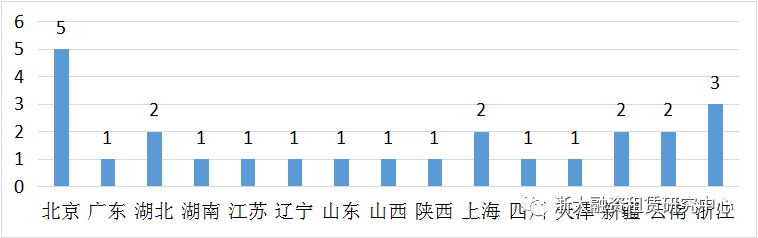 8月上市公司開展融資租賃業(yè)務(wù)分布南北相對均衡,其中北京開展5筆業(yè)務(wù),數(shù)量最多。南方以浙江、湖北、云南為主。