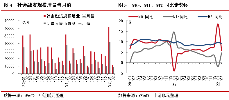 1月社融大幅超預(yù)期,2月出現(xiàn)階段性下滑,應(yīng)當(dāng)理性看待,不應(yīng)太悲觀。原因一是總基調(diào)仍是穩(wěn)增長和寬信用,決心不改。二是2月數(shù)據(jù)走弱也受去年同期高基數(shù)影響,21年2月新增信貸數(shù)據(jù)是歷史高點。三是較往年情況,1月往往有開門紅的需要,2月數(shù)據(jù)大部分情況不及預(yù)期。四是綜合1-2月來看,2022年1-2月累計新增社融7.36萬億元,同比仍多增4,499億元。五是2月PMI生產(chǎn)經(jīng)營活動預(yù)期指數(shù)為58.7%,較上月大幅增加1.2個百分點,穩(wěn)增長預(yù)期強。