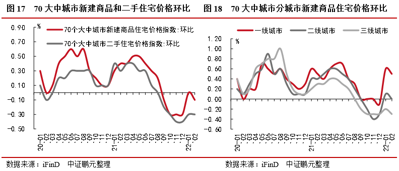 70個大中城市新建商品住宅和二手住宅銷售價格環(huán)比下降0.1%和0.3%,一二三線城市房價分化。一線城市商品住宅銷售價格環(huán)比上漲 二三線城市環(huán)比持平或下降,同比漲幅均繼續(xù)回落。