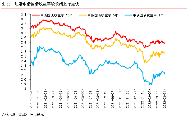 2月的經(jīng)濟數(shù)據(jù)雖有向好,但難掩與微觀主體較弱現(xiàn)實的背離,經(jīng)濟下行壓力仍大,債券市場較情緒化。受貨幣寬松預(yù)期,美聯(lián)儲加息,地緣政治沖突、疫情多重因素影響,債市在多空交織下,維持震蕩,整體還是走熊。其中,1年期中債國債到期收益率上行幅度明顯大幅5年期和10年期中債國債到期收益率。