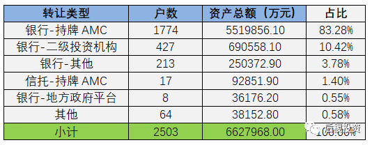 按轉讓及受讓主體類型分(只考慮有明確債權金額部分):
