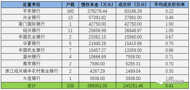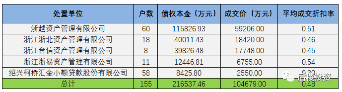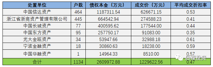 近一半成交記錄為單戶債權,其平均成交折扣率超0.8;其余成交記錄平均成交折扣率在0.4-0.5。