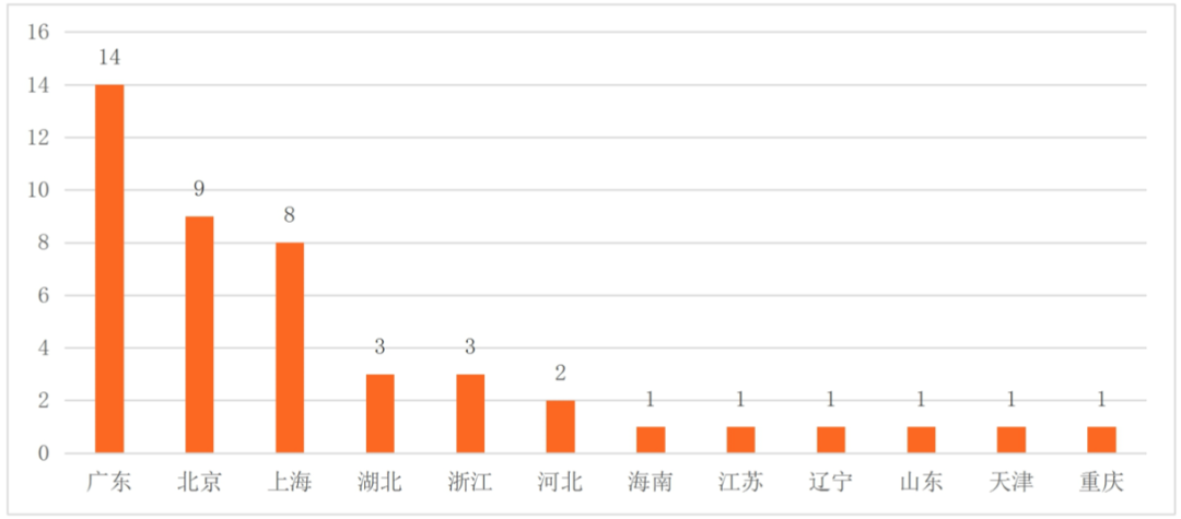 圖1:央行及持牌金融機構已成立金融科技子公司區域分布