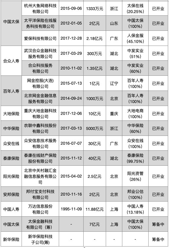 表3:29家保險業金融科技子公司