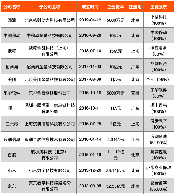 本文主要分析央行以及銀行、保險和證券業持牌金融機構設立的金融科技子公司,同時對部分行業巨頭旗下的金融科技子公司做簡單介紹。