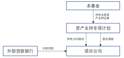 本基金通過基礎(chǔ)設(shè)施資產(chǎn)支持證券與項目公司特殊目的載體穿透取得基礎(chǔ)設(shè)施項目的所有權(quán)。本基金的整體架構(gòu)如下圖所示: