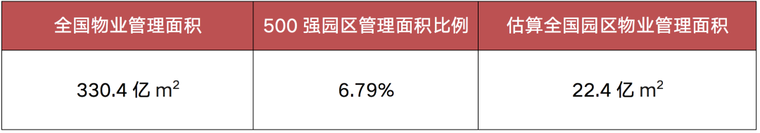 按照物業管理行業總管理規模,以及物企500強的園區管理規模占比,推算2020年末全國產業園區物業管理面積約為22.4億平方米。