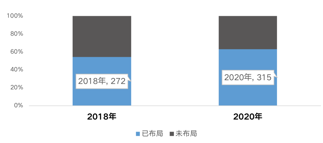2018年,綜合實力500強物企中,有272家布局產業園區物業。2020年,這一數據攀升至315家,占比超過六成。