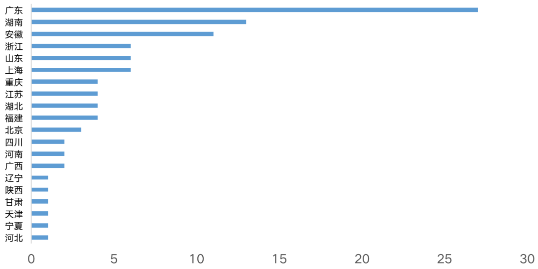 圖:園區管理面積前100強物企來源省份分布(家)
