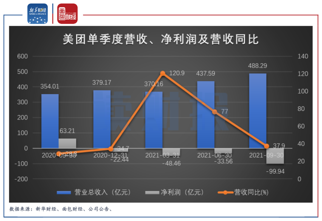 除了增速放緩,美團面臨的更為嚴重問題是凈利潤虧損巨大。數(shù)據(jù)顯示,公司第三季度虧損99.94億元,創(chuàng)單季度虧損新高。