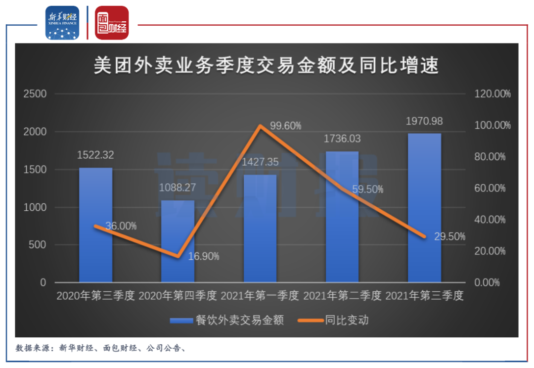 圖2:2020Q3-2021Q3美團外賣業(yè)務(wù)季度交易金額及其同比