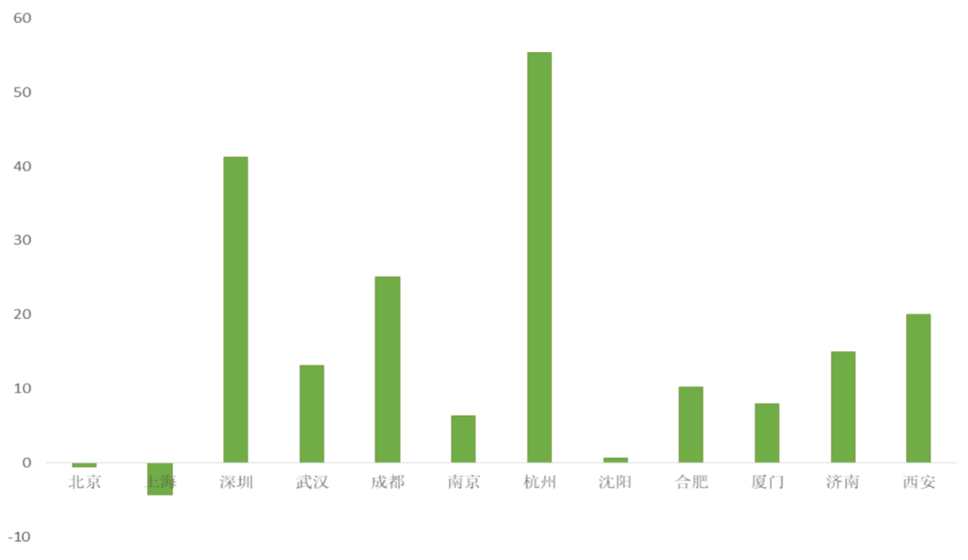 從各城市人口流入情況來看,對學(xué)歷型人才租賃補貼力度更大的城市,人口流入數(shù)量也更多。深圳、杭州、成都、武漢的補貼標(biāo)準(zhǔn)相對城市租金而言,能夠解決租房壓力,同時,這些城市的人口流入情況也更加樂觀;而從另一個角度來看,人口凈流入大的城市對人才提供租房補貼對于緩解城市居住壓力更有必要性和實際意義。