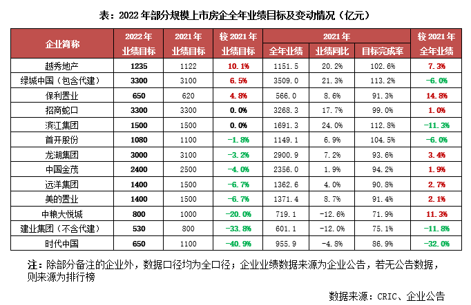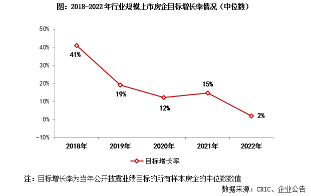 2022年至今,行業(yè)下行壓力持續(xù)、市場低迷、企業(yè)去化表現(xiàn)不佳,規(guī)模房企對全年銷售規(guī)模的預(yù)期更為謹(jǐn)慎。截至目前,僅有十余家上市房企公開披露了全年業(yè)績目標(biāo),數(shù)量較往年40家左右的水平銳減。且在公開披露年度業(yè)績目標(biāo)的房企中,多數(shù)企業(yè)的銷售目標(biāo)均有不同程度的回落。