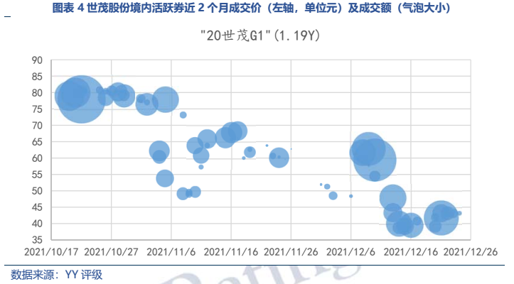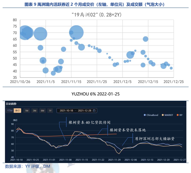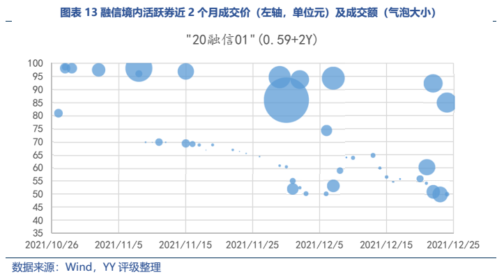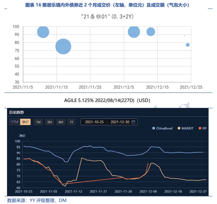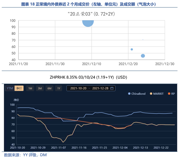 從臨近到期的境內外債券成交來看,價格走勢基本與公司的再融資邊際息息相關,可見投資人對于公司的兌付信心仍取決于公司再融資情況。