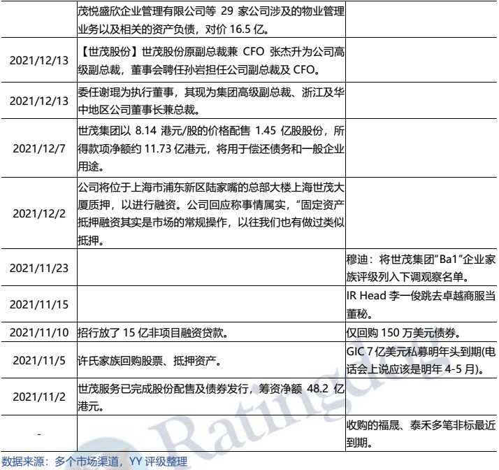 ④資產抵質押:大股東許榮茂家族將旗下3層香港中環中心物業抵押給星展銀行,取得14.05億港元貸款;世茂集團將位于上海陸家嘴的世貿大廈質押融資,金額不詳。