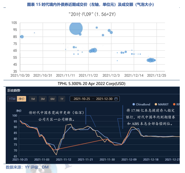 目前時代境內外價格分化明顯,“20時代09”跌至50元檔,8只存續美元債凈價在68-81美元之間。