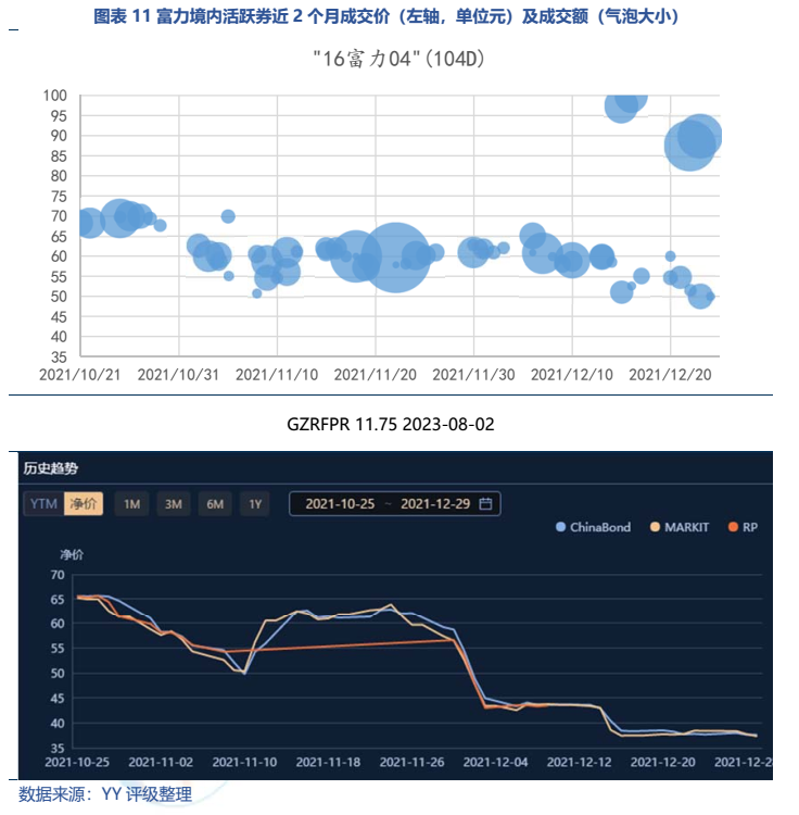 近兩月富力境內活躍券“16富力04”價格從70元檔跌至50元檔,而境外10只存續債中有8只價格在30元檔,已反應展期兌付的不確定性。
