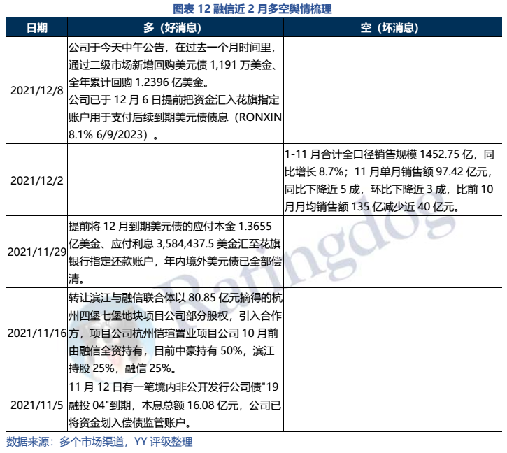 融信近兩月主要是完成年內債券兌付,維護二級市場估值及轉讓項目股權以回籠資金: