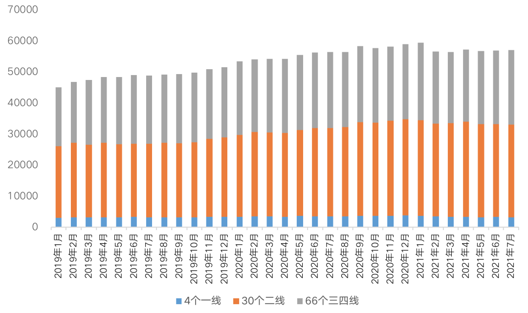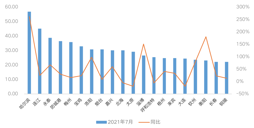 備注:2021年7月商品住宅庫存去化周期=2021年7月末商品住宅庫存量/近3月商品住宅成交面積均值