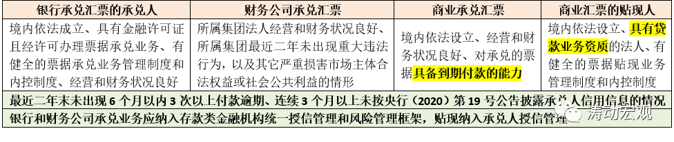 《征求意見稿》對銀票(含銀行和農(nóng)信社)、財務(wù)公司承兌匯票(含財務(wù)公司及所屬集團)以及商票的承兌人提出了一系列要求。其中有一條是明確的,即承兌人最近二年末未出現(xiàn)6個月以內(nèi)3次以上付款逾期、連續(xù)3個月以上未按央行(2020)第19號公告披露承兌人信用信息的情況。