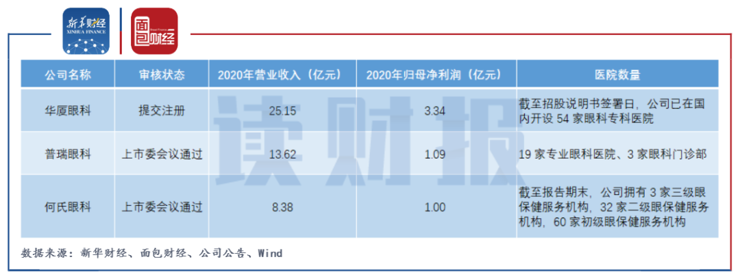 公開資料顯示,華廈眼科創業板上市目前已處于提交注冊階段。截至最新招股說明書簽署日,華廈眼科已在國內開設54家眼科專科醫院。此外,普瑞眼科、何氏眼科的上市申請也已獲得上市委會議通過。(CJT)
