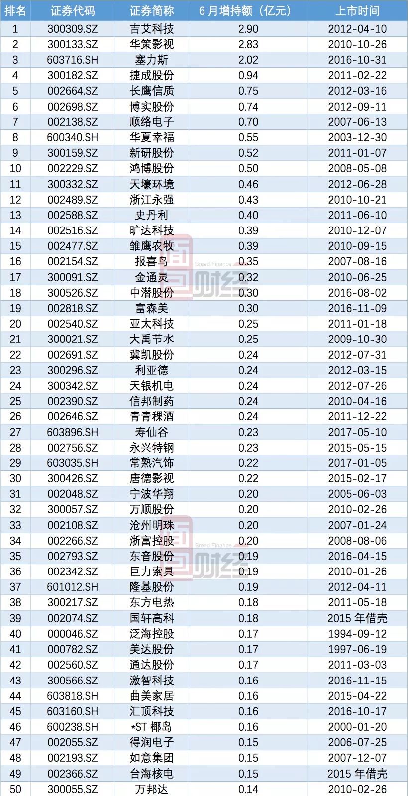 按照董監(jiān)高及相關(guān)人員2018年6月增持金額,整理出了排名前50的上市公司: