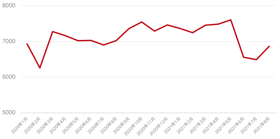 2018年,岳陽樓市開始轉(zhuǎn)冷,市場開啟下行趨勢,四季度時房價由2017年最高9000元/平米降至7000元/平方米左右,價格逐漸回歸穩(wěn)定,至今年8月房價跌破7000元/平方米。從銷售數(shù)據(jù)來看,2020年以來,月度成交套數(shù)基本維持在1500套左右,今年六七月,受大幅降價影響,成交高位運(yùn)行,分別成交2228套和2286套,成交價格跌至7000元/平方米以下。