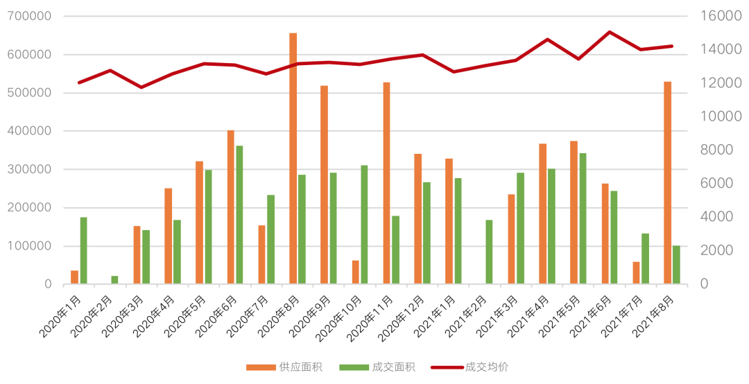 成交量價走勢(單位:平方米,元/平方米)