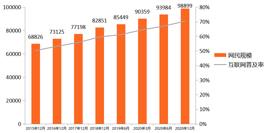 圖 2:2015-2020年我國網民規模與互聯網普及率
