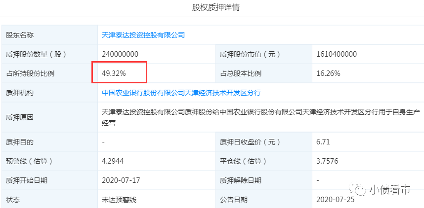 根據(jù)最新披露,泰達控股已將2.4億股泰達股份股票質(zhì)押,占其所持股票比例的49.32%,并將所持泰達航母旅游集團的全部股票質(zhì)押。