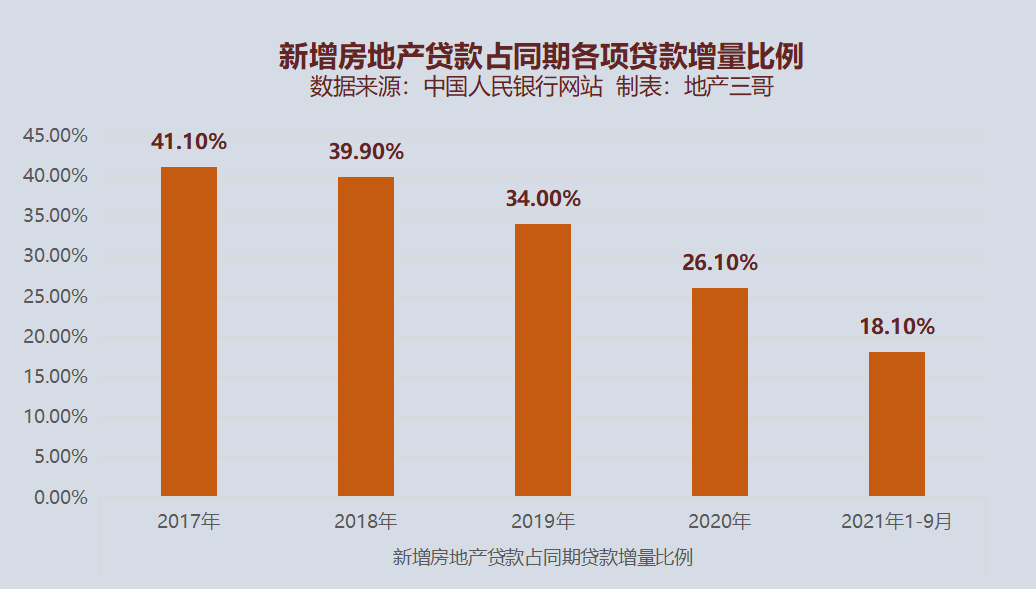 首先,看新增房地產(chǎn)貸款總量占比,2018年以來(lái),新增房地產(chǎn)貸款占比逐年下降。今年前三季度,新增房地產(chǎn)貸款占各項(xiàng)貸款增量的比例只有18.10%,創(chuàng)多年以來(lái)的新低。