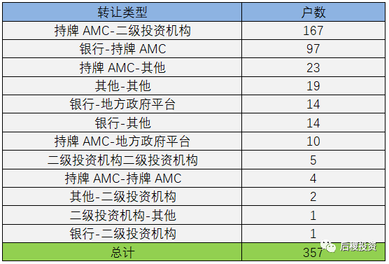 按轉讓及受讓主體類型分(只考慮有明確債權金額部分):