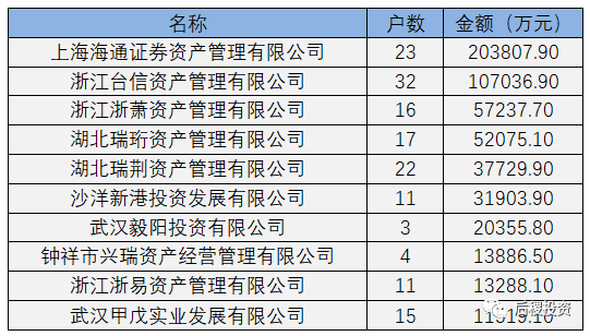 從阿里拍賣平臺中篩選出湖北地區債權(超過1000萬)成交記錄,總成交戶數97戶,成交債權總本金超25億,總成交價11.1億元。具體情況如下表所示: