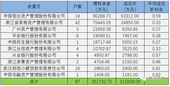 由于東方資產和信達資產成交記錄未披露債權金額,暫不予分析。