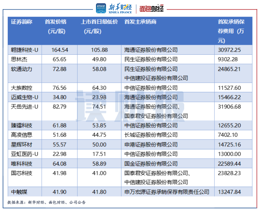 2022年以來,由中信建投擔當聯席主承銷商的國芯科技和軟通動力在上市首日盤中一度跌破發行價。