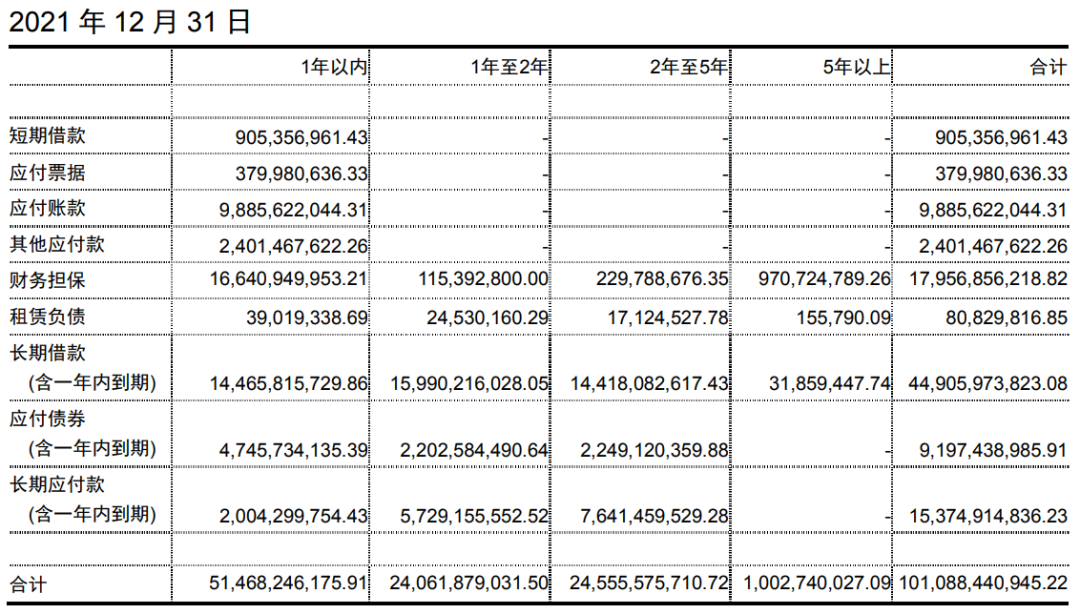(中交地產2021年債務數據,單位元)