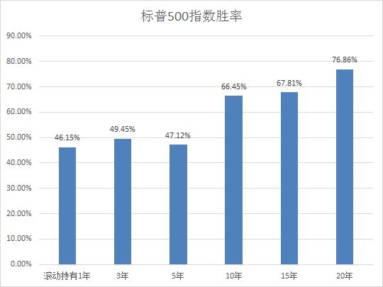 通過圖1、圖2的對比,標(biāo)普500指數(shù)是一個(gè)非常優(yōu)質(zhì)的股票指數(shù)。如果投資時(shí)間在十年以上,可以重倉配置。投資的策略可以是買入并持有。但是對于A股而言,由于長期策略的勝率并不很高,可能買入并持有的策略并不是很適合A股市場。但無論如何,投資期限越長,配置更多的股票資產(chǎn)是一致的。