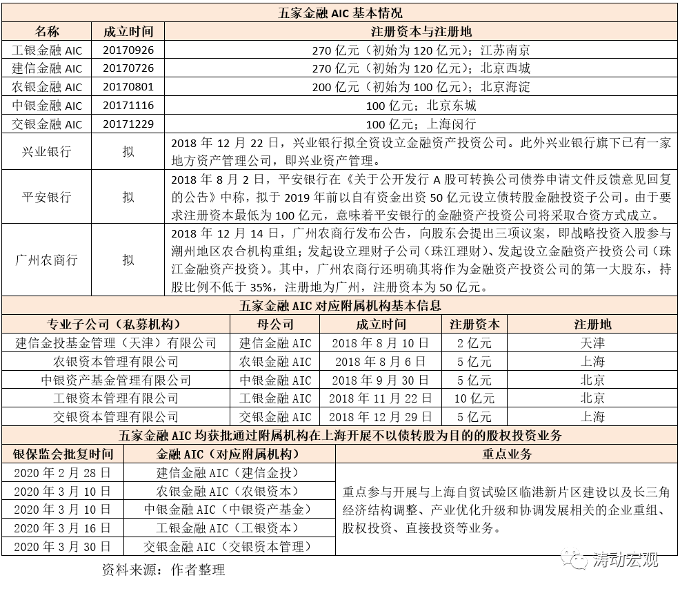 在這種背景下,讓商業(yè)銀行成立專門開展市場(chǎng)化債轉(zhuǎn)股業(yè)務(wù)的子公司(即金融AIC),將債轉(zhuǎn)股的綜合收益內(nèi)部化,以掃清商業(yè)銀行更大規(guī)模參與債轉(zhuǎn)股的障礙,成為市場(chǎng)化債轉(zhuǎn)股工作的一項(xiàng)核心內(nèi)容。
