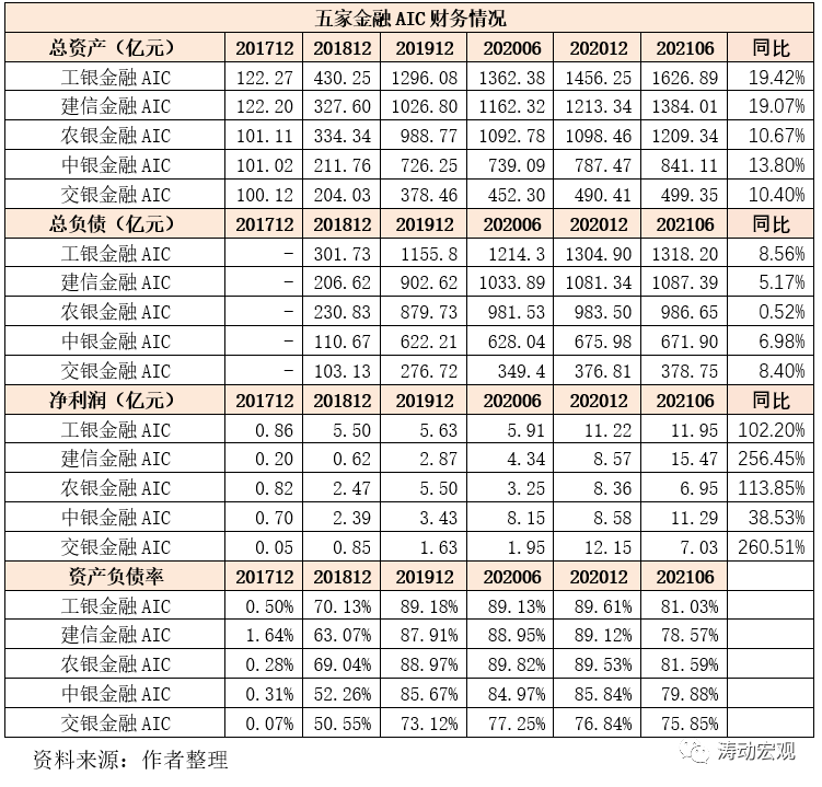 三、五家金融AIC情況分析