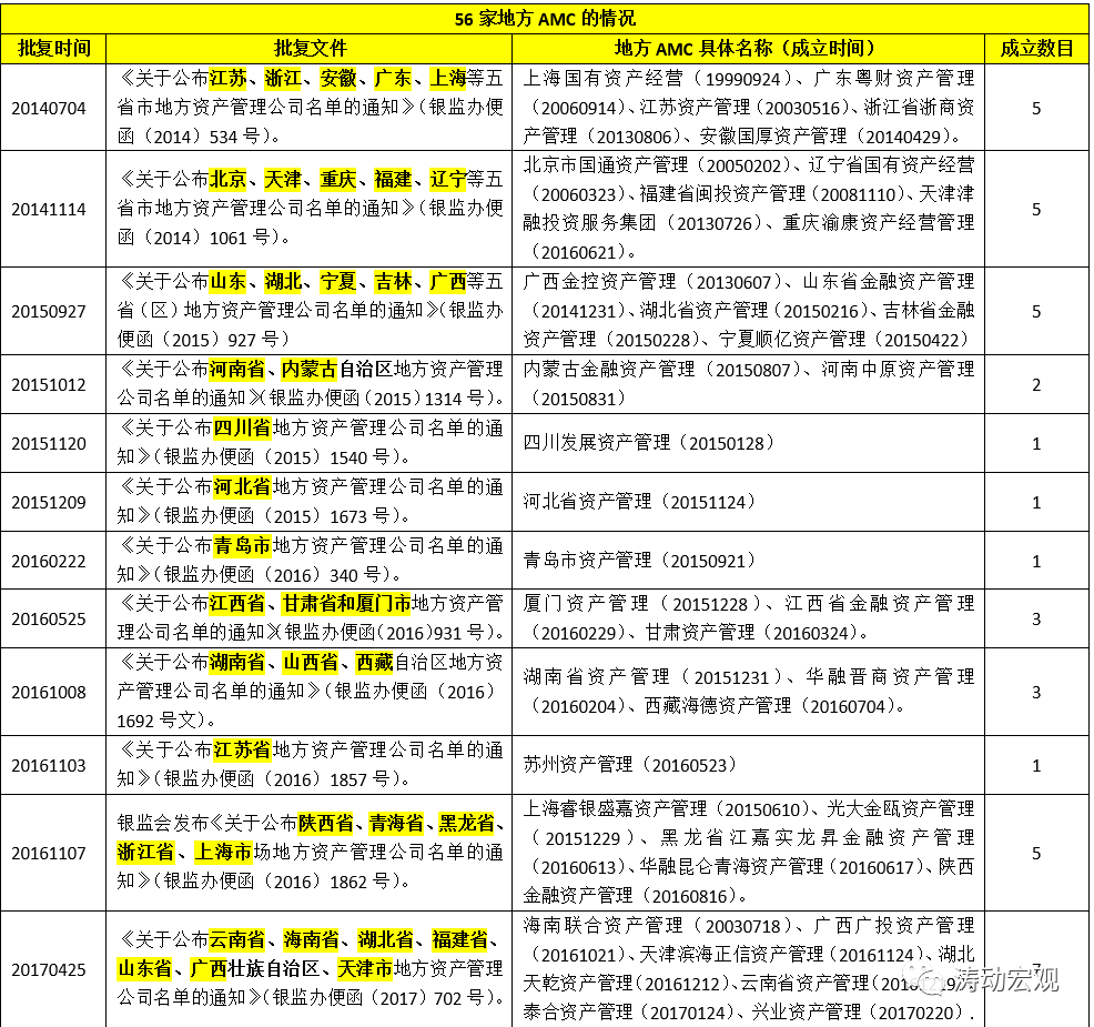3、2017年的全國(guó)金融工作會(huì)議再次定調(diào)后續(xù)三年的基調(diào)是化解金融風(fēng)險(xiǎn)和嚴(yán)監(jiān)管,而帶化解金融風(fēng)險(xiǎn)天然職責(zé)的地方性AMC自然再到受到政策青睞,特別是2016年發(fā)布的1738號(hào)文明確提出各地可以視情況新設(shè)一家地方性AMC,使得2017-2018年兩年時(shí)間里合計(jì)批設(shè)21家地方AMC,使我國(guó)地方性AMC數(shù)量增至52家。